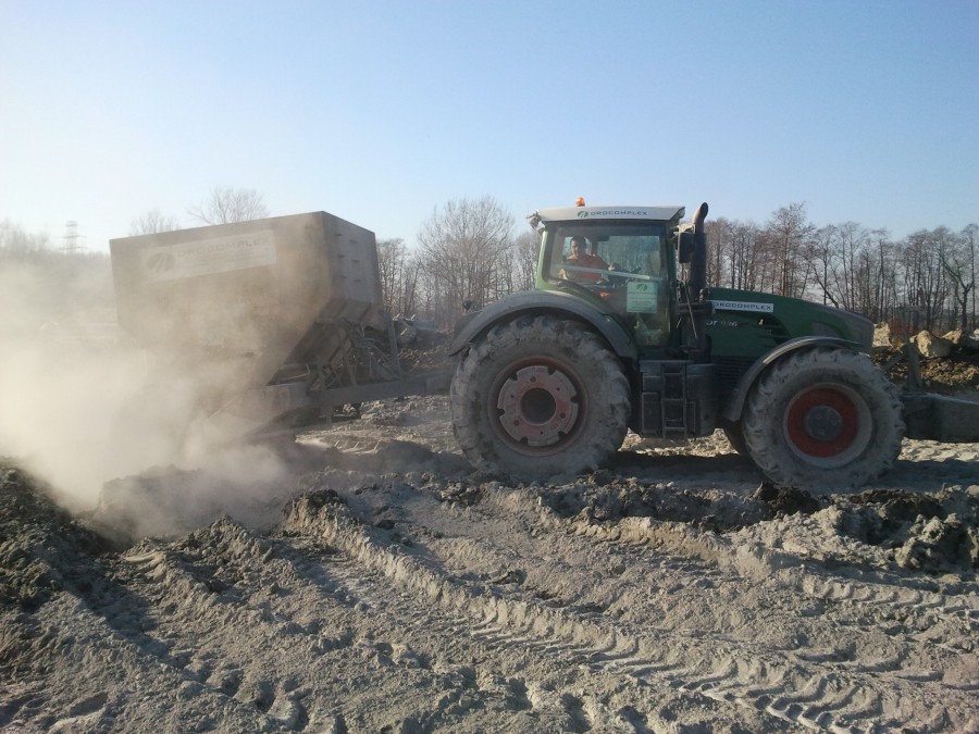 Stabilizacja gruntu cementem oraz osuszanie spoiwem Terramix N – Centrum Logistyczne w Bielsku-Białej Mazańcowicach.