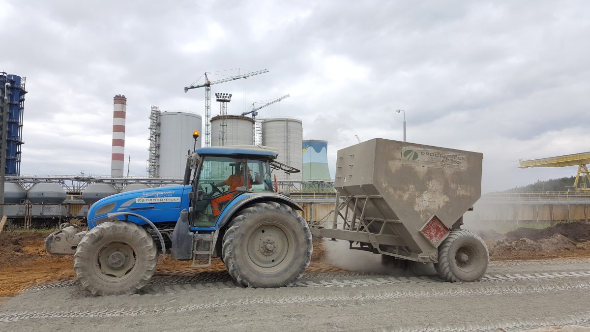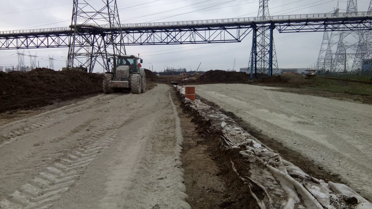 Stabilizacja gruntu cementem podtorza do Elektrowni Opole w Czarnowąsach.