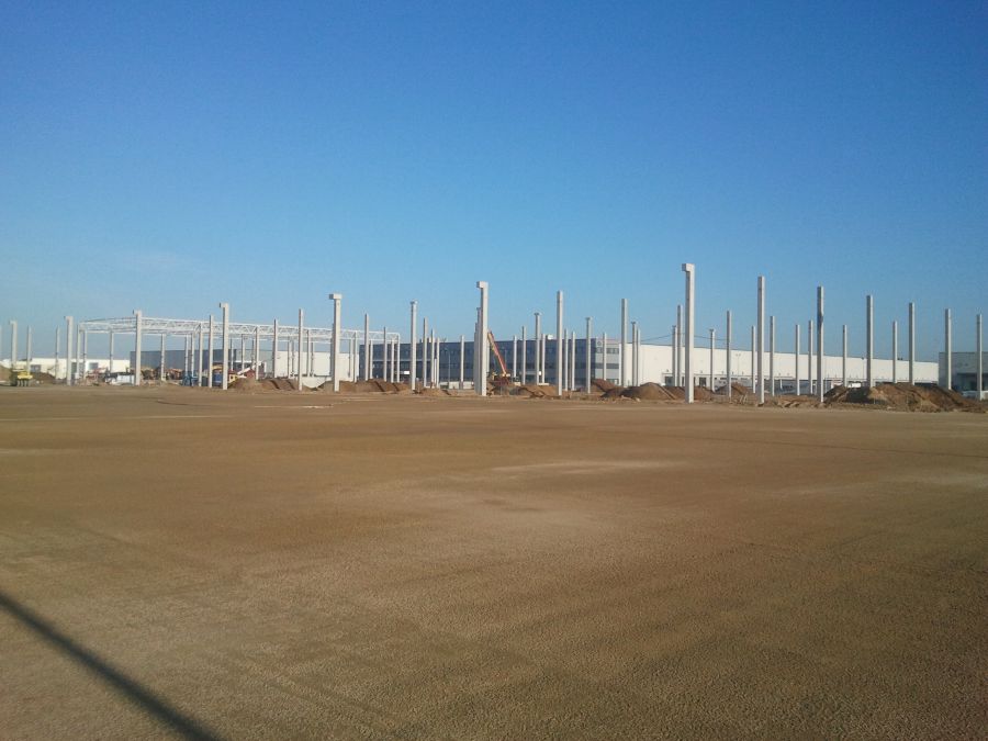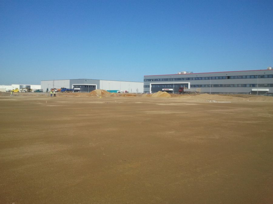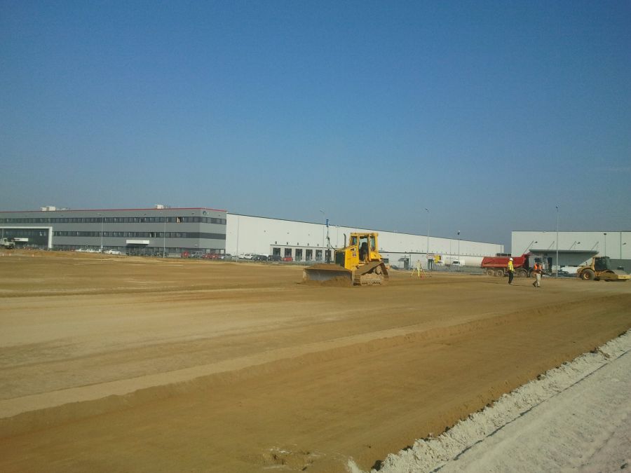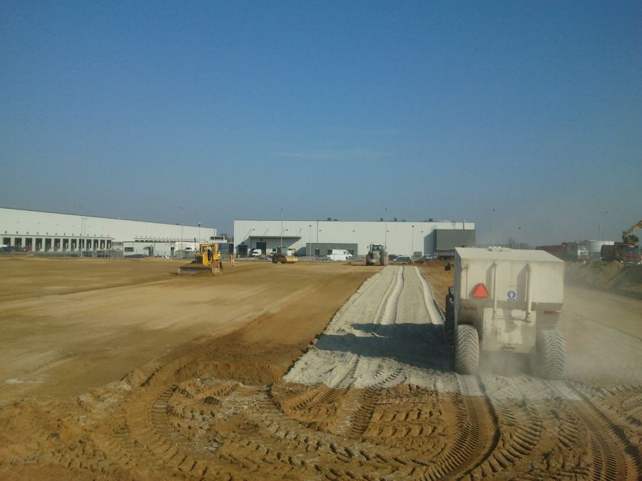 Stabilizacja gruntu pod halę DC8, drogi i parkingi – Prologis Park Wrocław V – Nowa Wieś Wrocławska.
