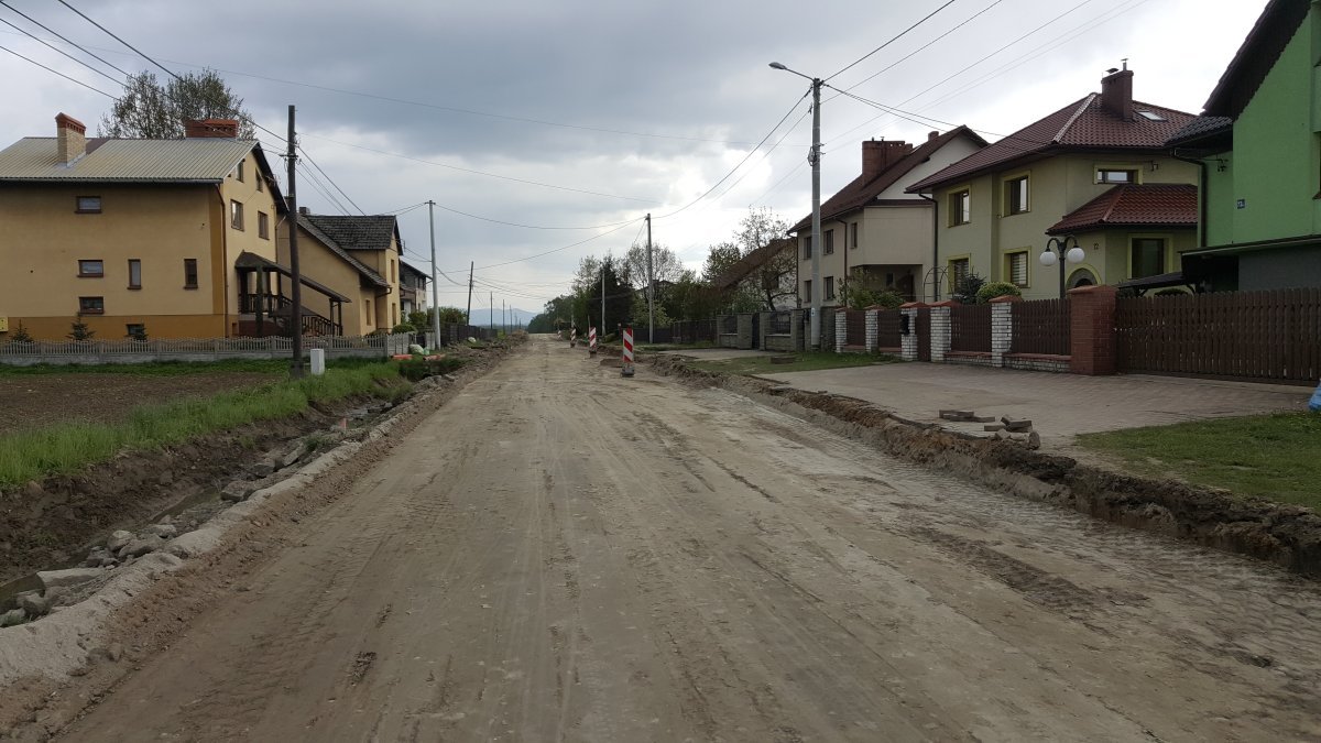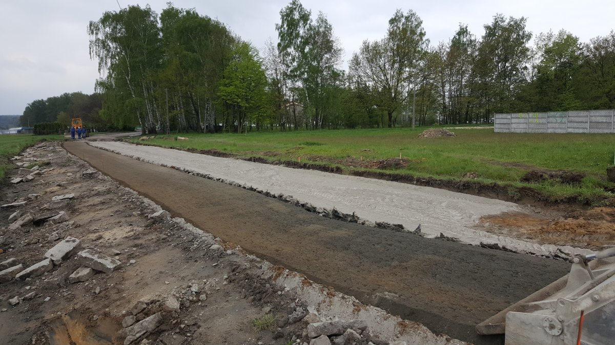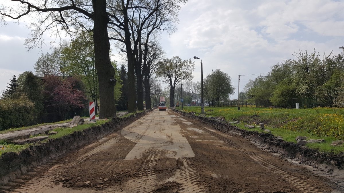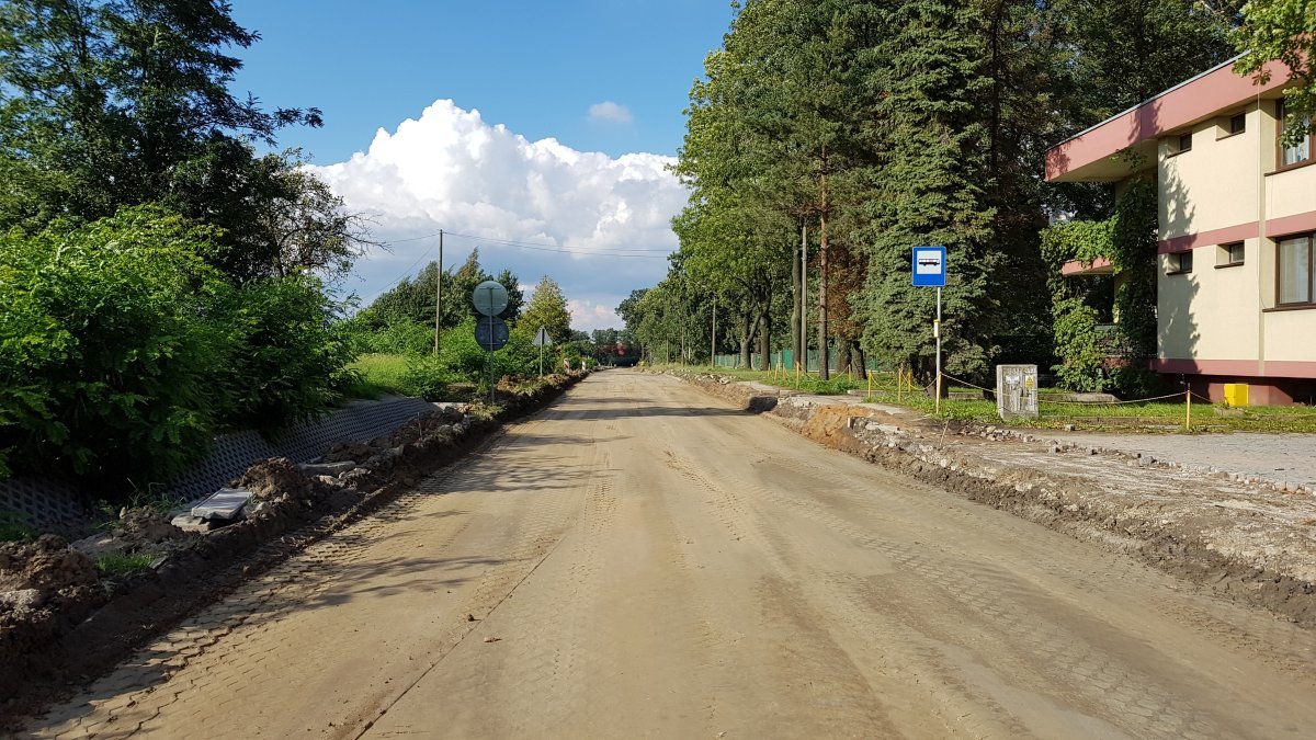 Stabilizacja gruntu spoiwem Terramix M grubości 30cm, drogi powiatowej 4112S i 4113S – ul. Zdrojowa w Pszczynie i ul. Jeziorna w Goczałkowicach.