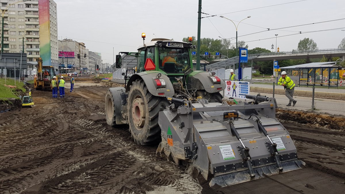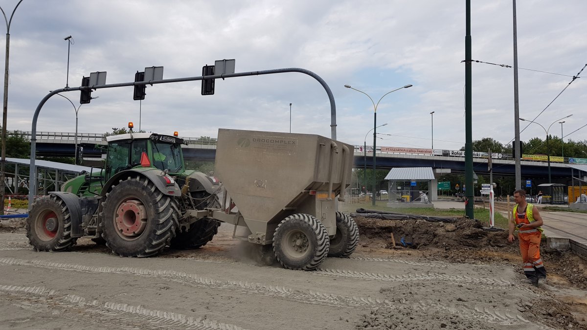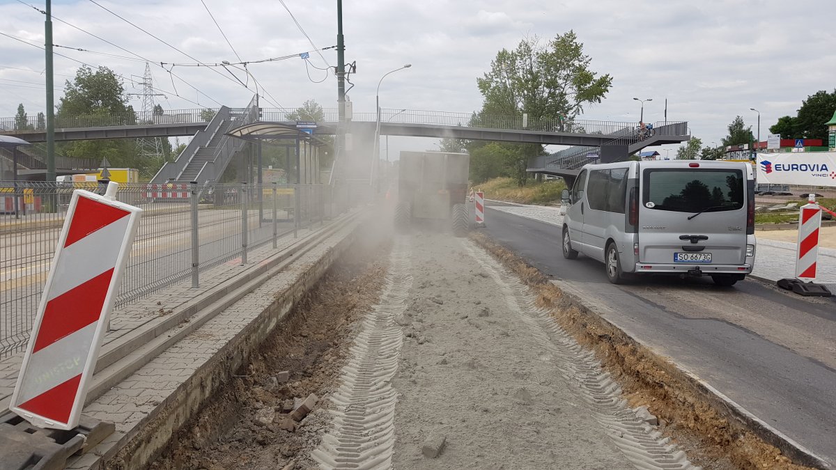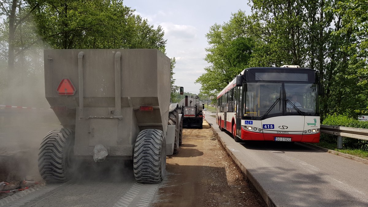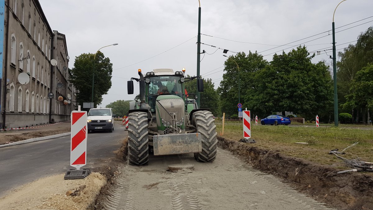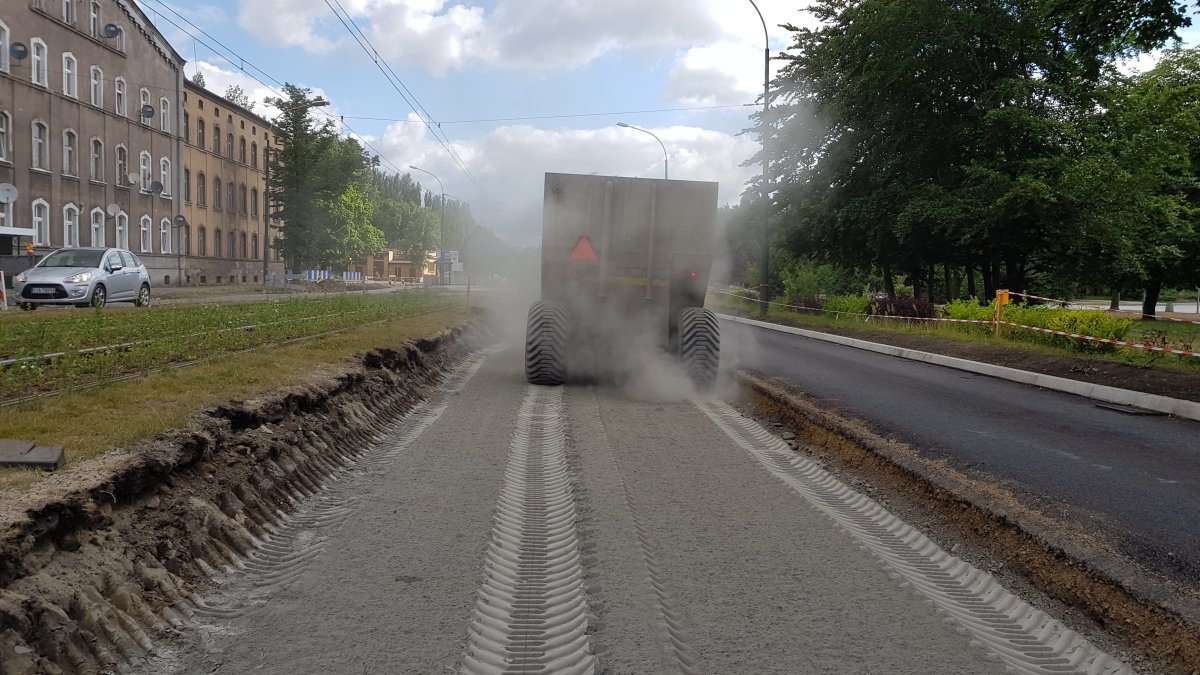 Stabilizacja gruntu cementem na gł. 20 cm w Sosnowcu, ul. 3 Maja.