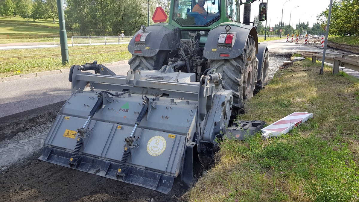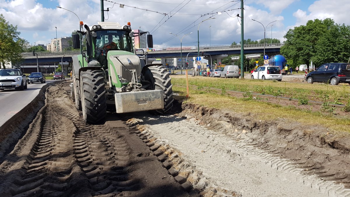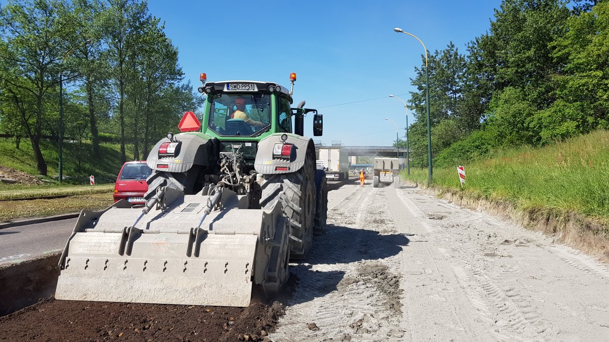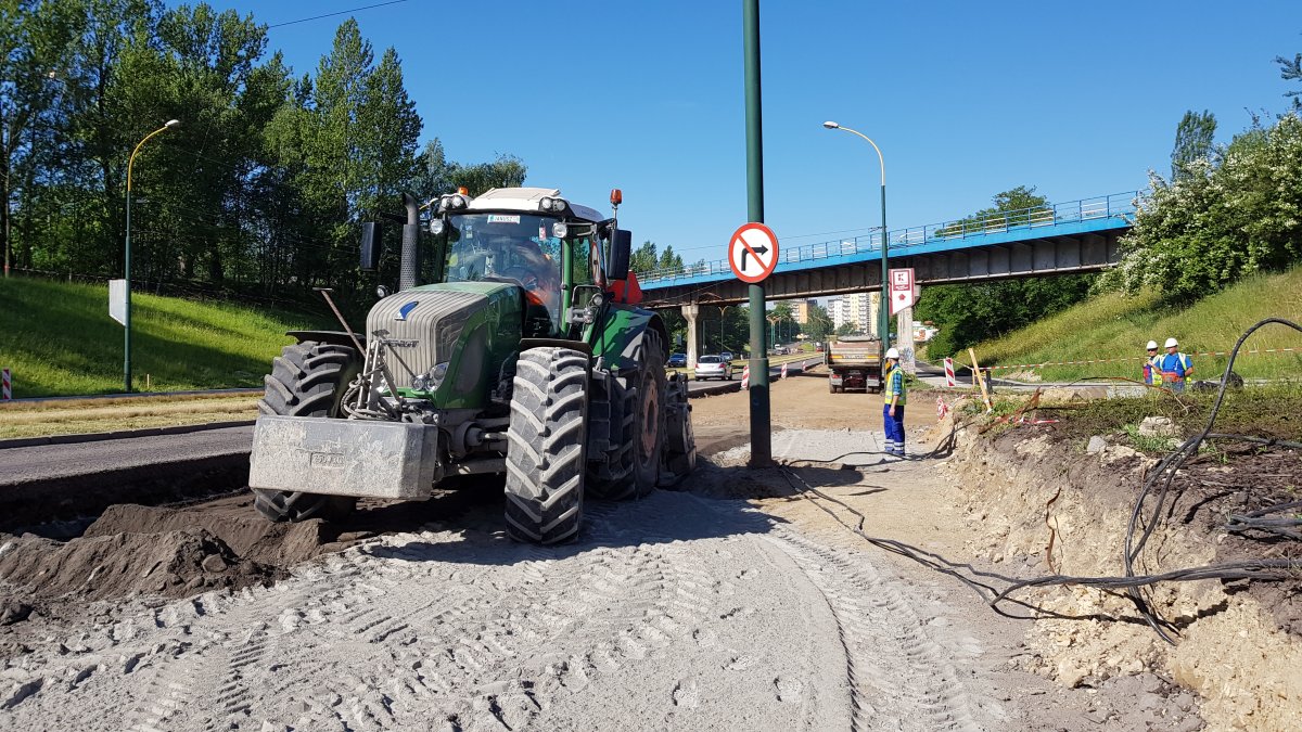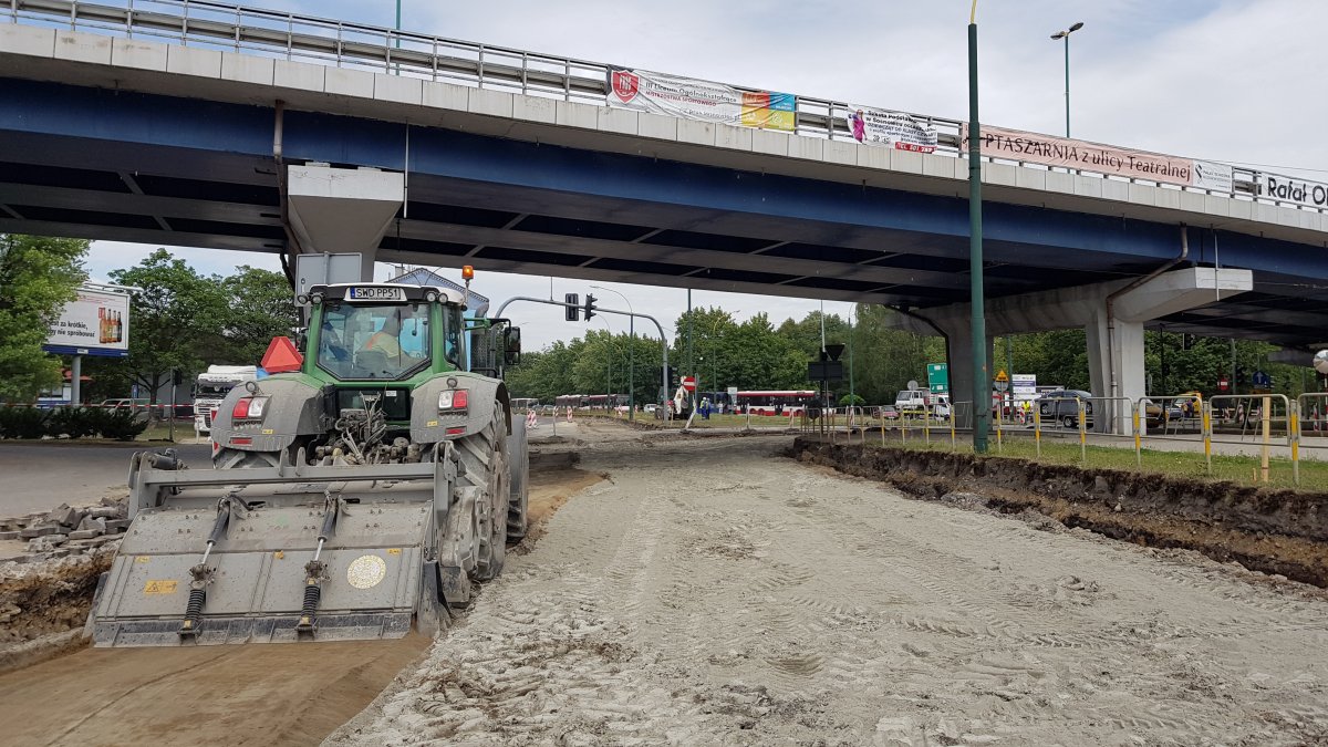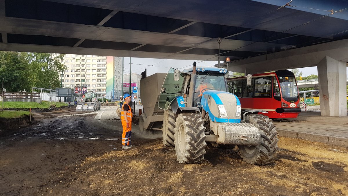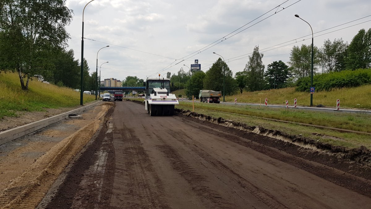 Stabilizacja gruntu cementem na gł. 20 cm w Sosnowcu, ul. 3 Maja.