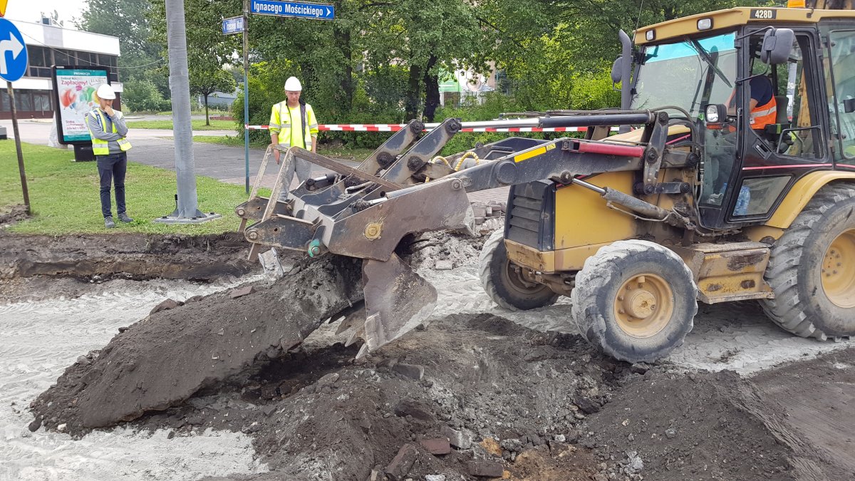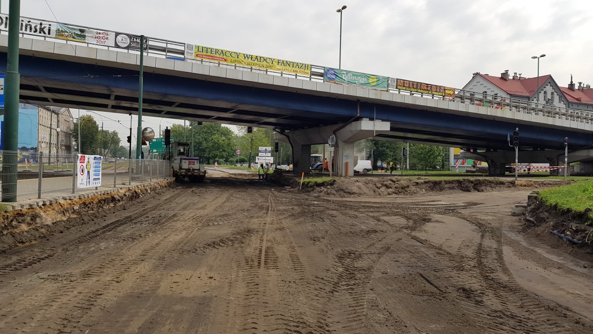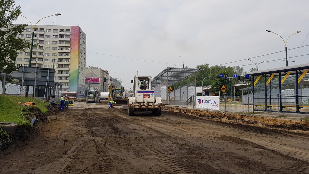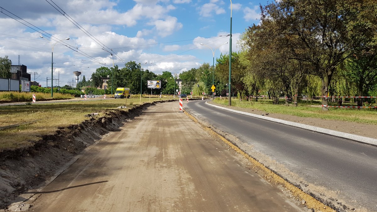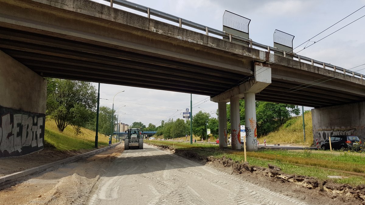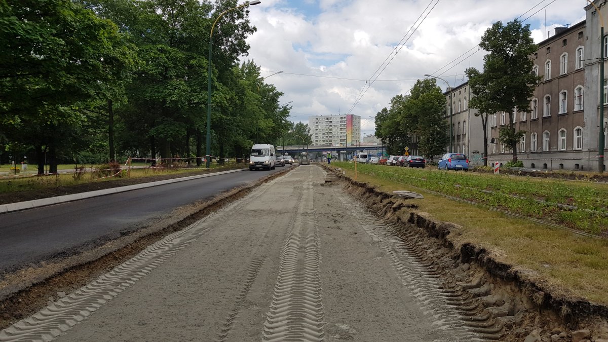 Stabilizacja gruntu cementem na gł. 20 cm w Sosnowcu, ul. 3 Maja.